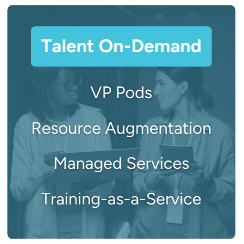 Our Talent On-Demand solutions provide flexible and location-agnostic support for challenges of any scale, offering People Pods, Resource Augmentation, and Training-as-a-Service